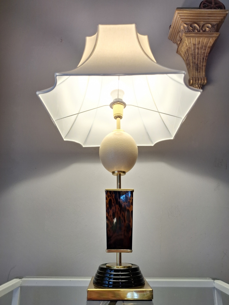 Raro exemplo do estilo Hollywood Regency, anos 1940. Peça de design atribuída ao estúdio T. Arquette. Restaurado, com fiação elétrica nova. Proveniência: West Hollywood Props. Dimensões: Altura 55cm, base 15cm x 15cm. Preço: R$ 15.000,00.