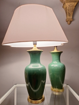 Chinoiserie Vintage Celadon 1970s – Par Raro com Bases de Rosewood e Cúpulas Sob Medida